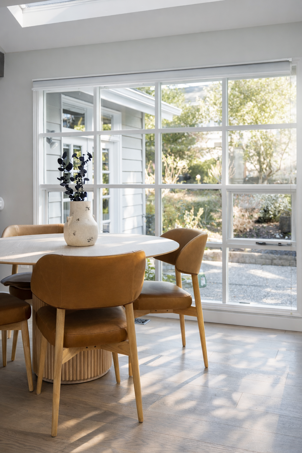 Strategic spatial refinements improve both circulation and visual continuity, allowing light to travel deeper into the interior and enhancing the connection between kitchen, dining, and living areas. Carefully curated materials balance simplicity with warmth, ensuring the space feels inviting rather than stark.